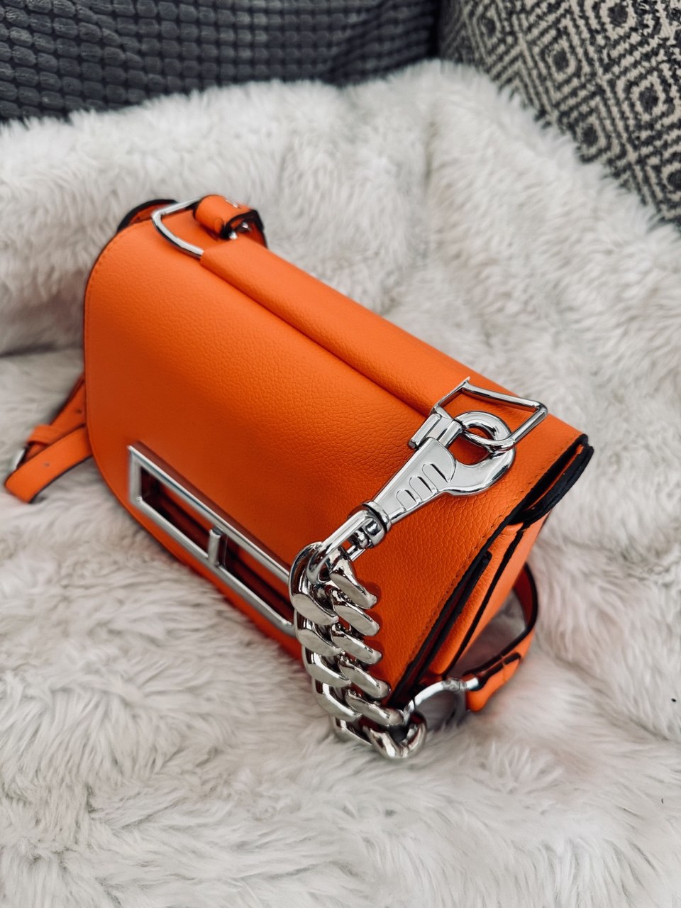 بدنه کیف فرم سفت و شکیلی دارد و باعث میشود حتی بعد از مدتها استفاده، ظاهر آن مرتب بماند. بند زنجیر با رنگ بدنه هماهنگ است و جلوهای مدرن و زنانه به استایل میدهد.